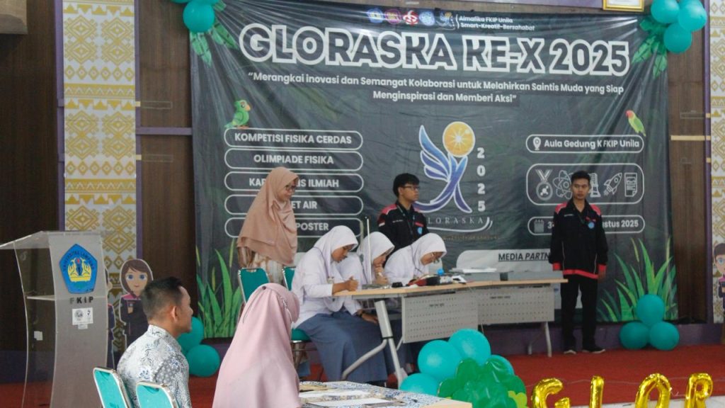 Sebagai salah satu rangkaian kegiatan GLORASKA ke-X 2025 (Gelaran Lomba Sains dan Silaturahmi Pendidikan Fisika), Kompetisi Fisika Cerdas sukses digelar pada Jumat, 1 Agustus 2025, di Aula K FKIP Universitas Lampung. Lomba ini diikuti oleh peserta dari berbagai SMA/SMK/MA Sederajat yang datang dari sejumlah daerah di Provinsi Lampung.