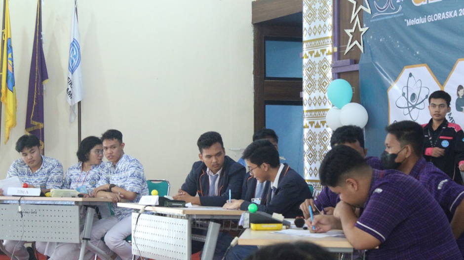 Ruang praktikum yang dapat menampung sekitar 20 orang, dilengkapi dengan proyektor, layar, sound system, papan tulis, meja, kursi, dan podium.