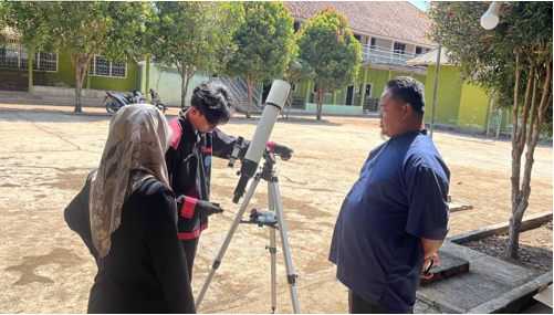 Physics Learning Laboratory equipment has been used by students in the PANDAWA LIMA (Cross-Community Student Service) activities such as guiding the teachers to observe the sun at the school as presented on figure below.