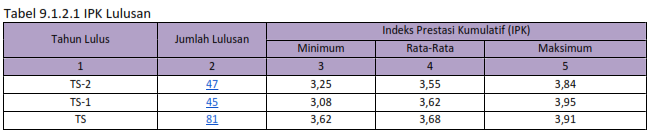 Data on the number of graduates and their cumulative grade point average (GPA) in the last three years.